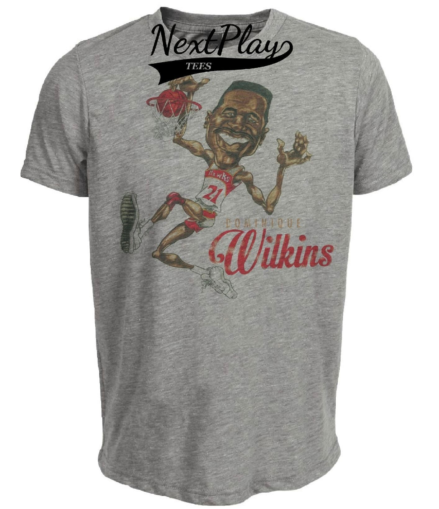 Atlanta Hawks Retro Dominique Wilkins Basketball 1986 Artwork Heather Gray Sublimated T-Shirt
