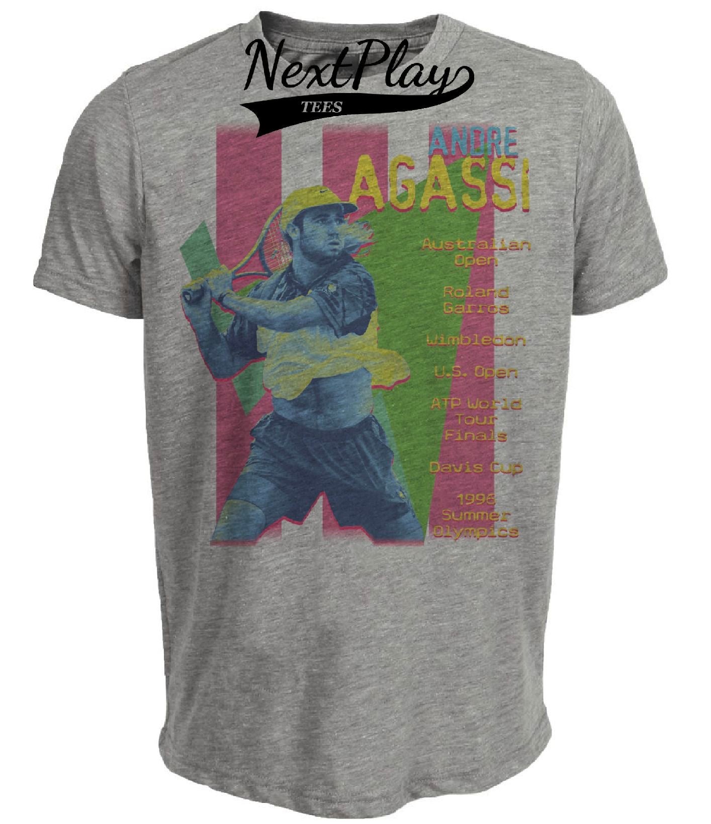 Tennis Retro Andre Agassi 1996 Artwork Heather Gray Sublimated T-Shirt