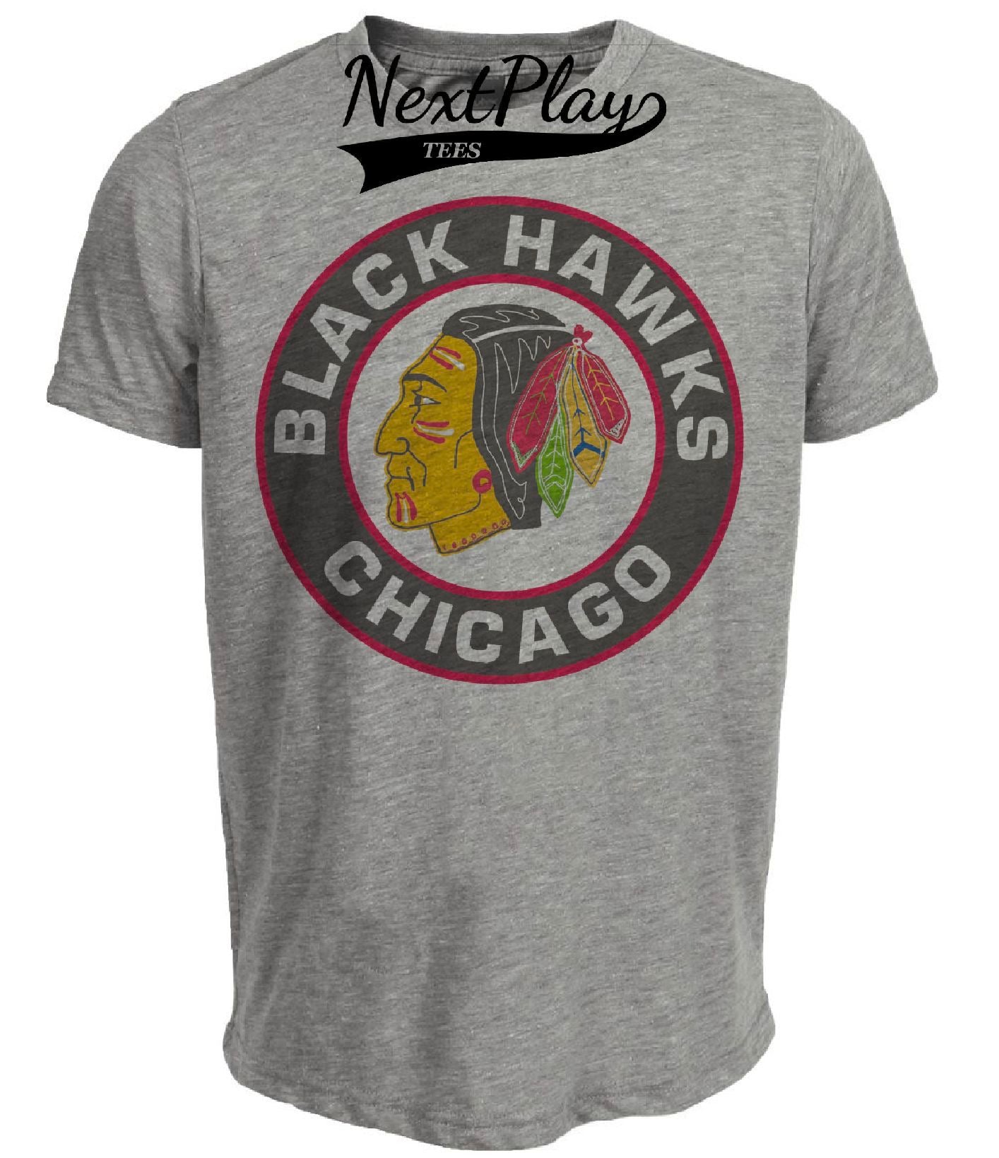 Chicago Black Hawks Retro Hockey 1955 Artwork Heather Gray Sublimated T-Shirt