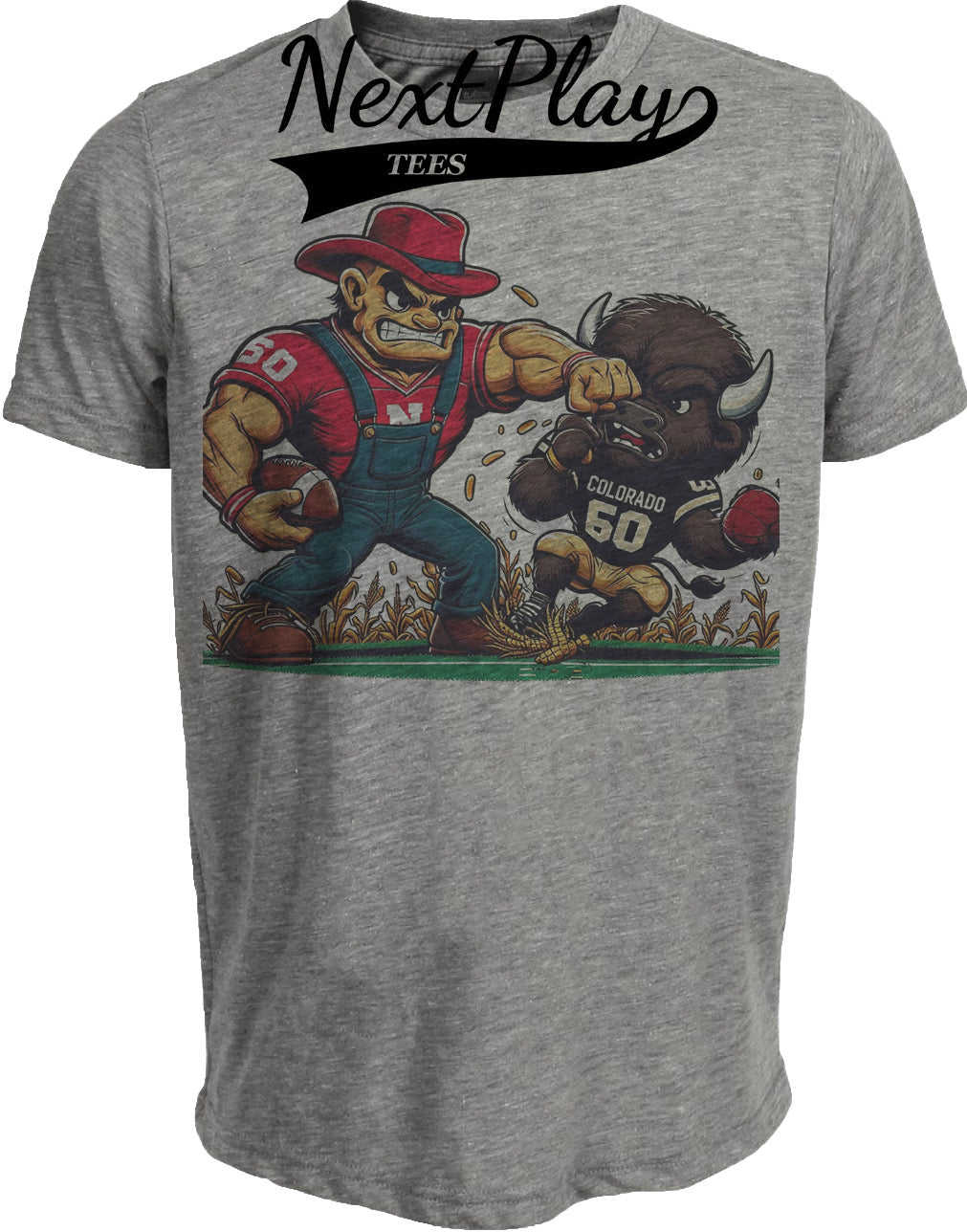 Nebraska Cornhuskers vs. Colorado Retro Rivalry Football 1994 Artwork Heather Gray Sublimated T-Shirt