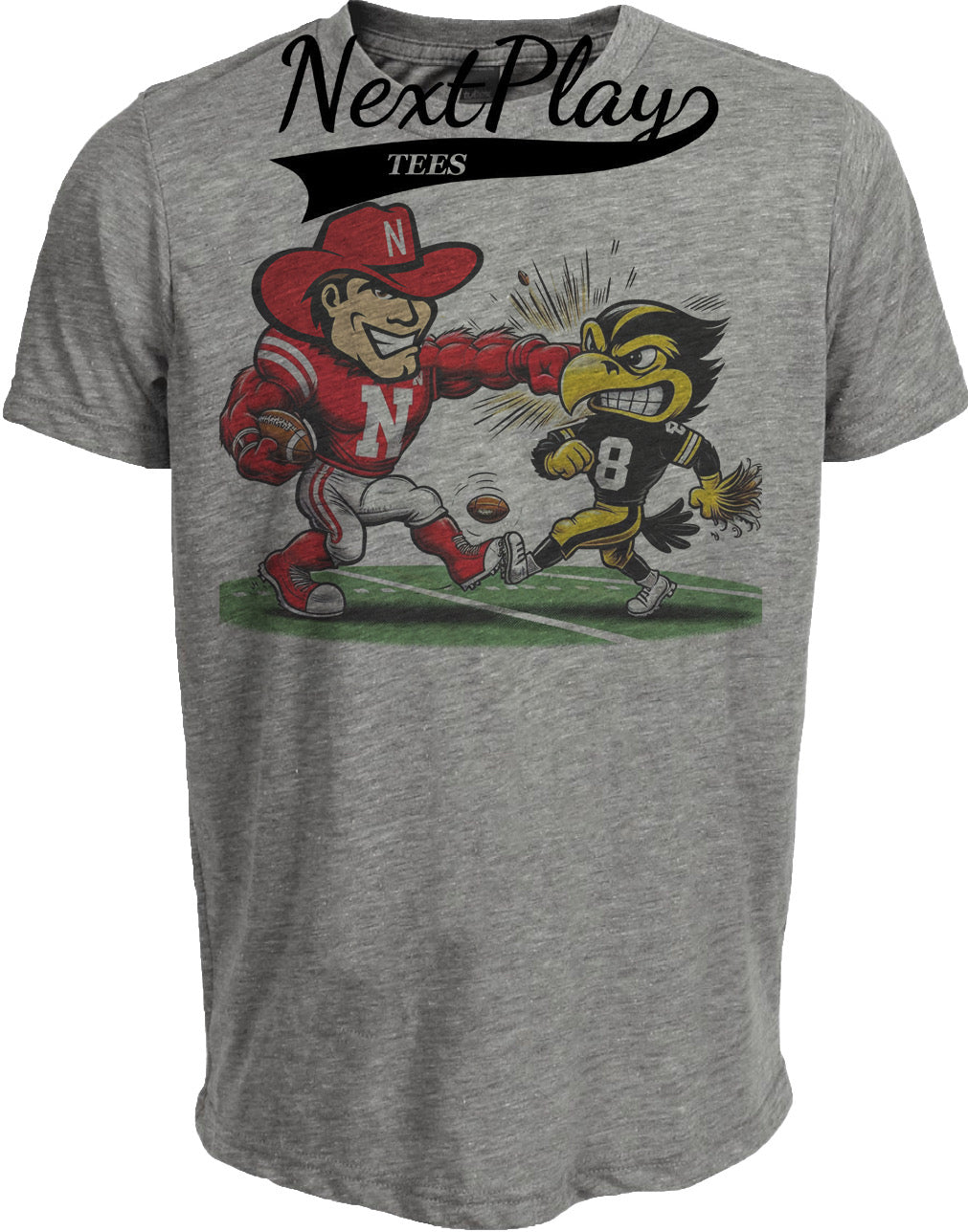 Nebraska Cornhuskers vs. Iowa Hawkeyes Retro Rivalry Football 1998 Artwork Heather Gray Sublimated T-Shirt