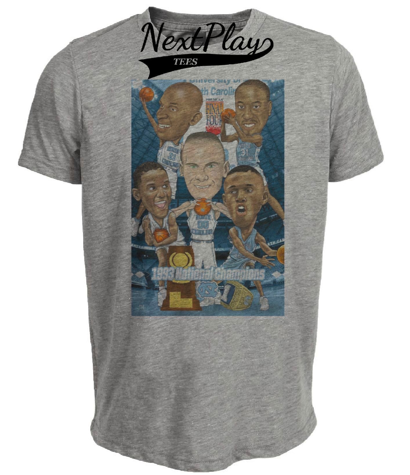 North Carolina Tar Heels Retro National Champions Basketball 1993 Artwork Heather Gray Sublimated T-Shirt