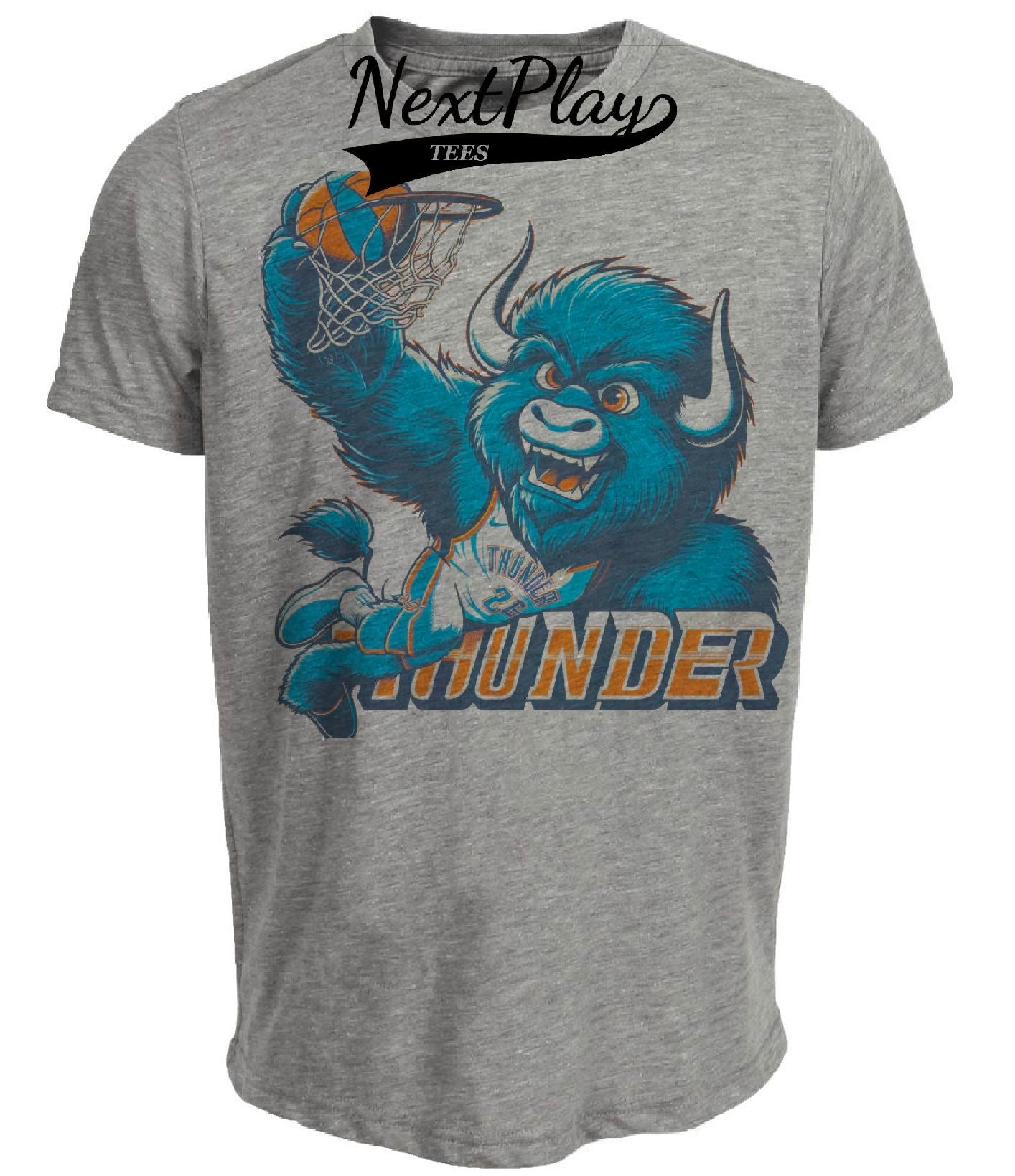 Oklahoma City Thunder Vintage Basketball OKC Mascot Artwork Heather Gray Sublimated T-Shirt