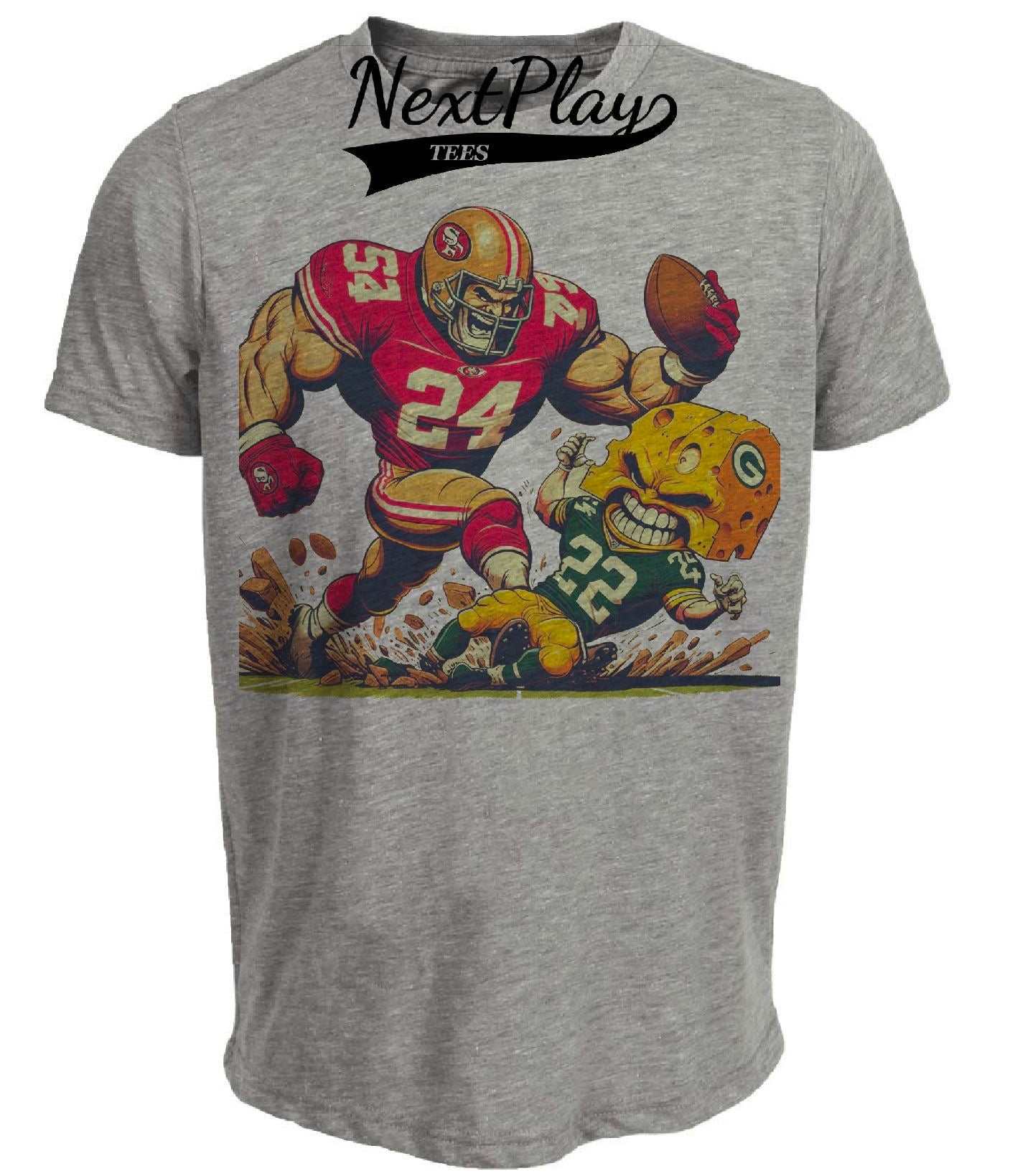 San Francisco 49ers vs. Green Bay Packers Retro Rivalry Football Mascot 1989 Artwork Heather Gray Sublimated T-Shirt