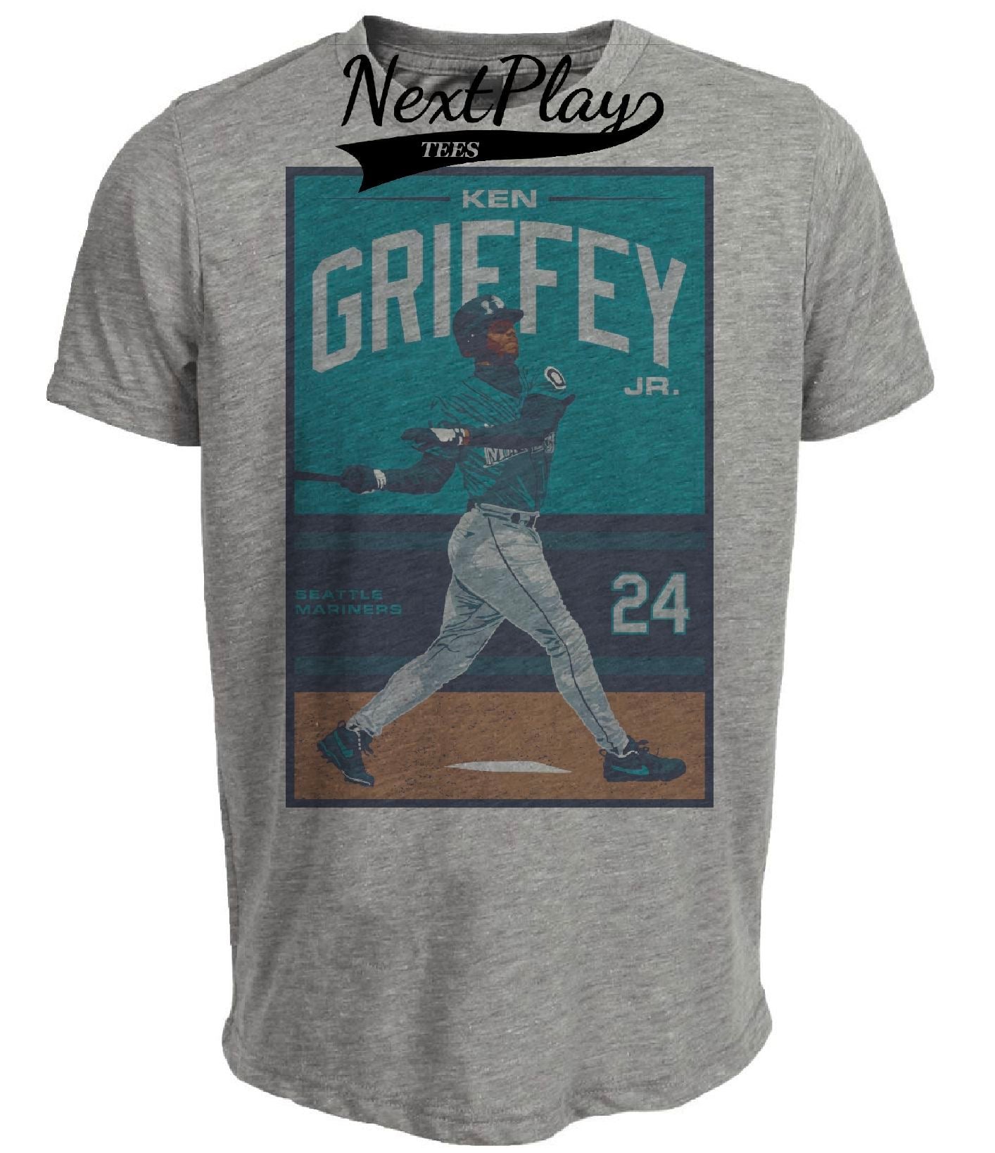 Seattle Mariners Retro Ken Griffey Jr. Baseball 1995 Artwork Heather Gray Sublimated T-Shirt