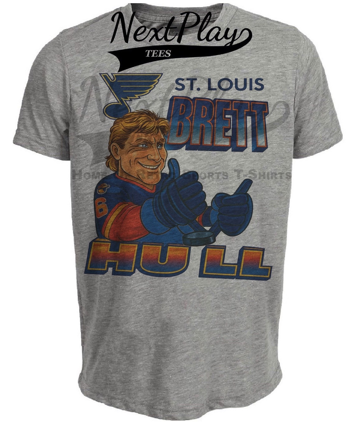 St. Louis Blues Brett Hull Retro Hockey 1989 Artwork Heather Gray Sublimated T-Shirt