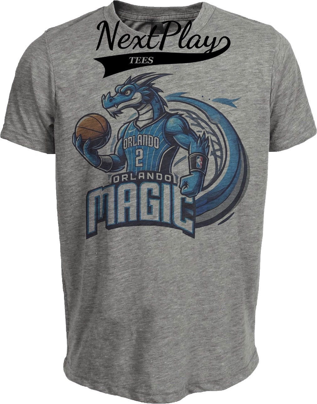 Orlando Magic Exclusive Retro Basketball Puff Mascot Artwork Heather Gray Sublimated T-Shirt