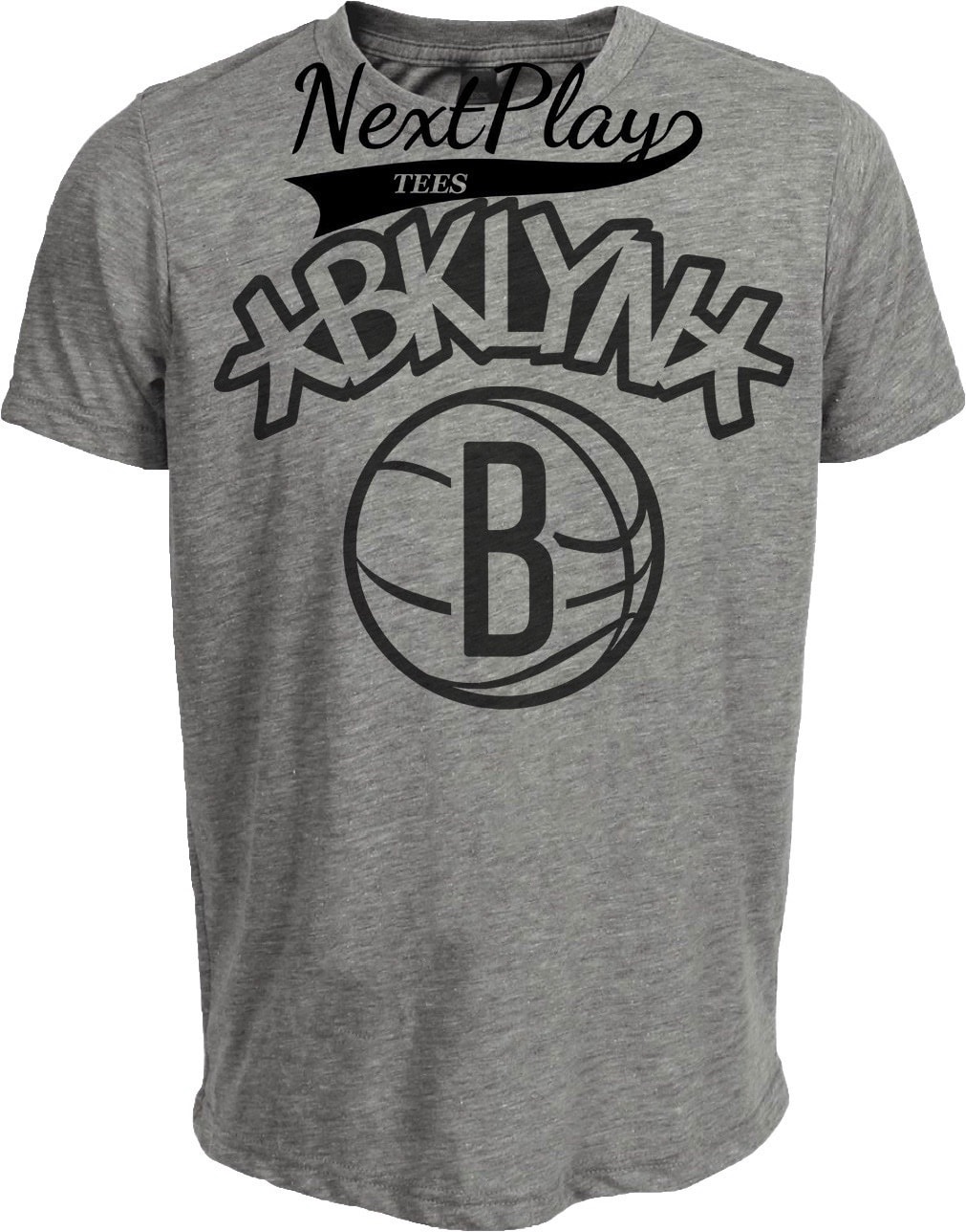 Brooklyn Nets Retro Basketball Graffiti Font Artwork Heather Gray Sublimated T-Shirt