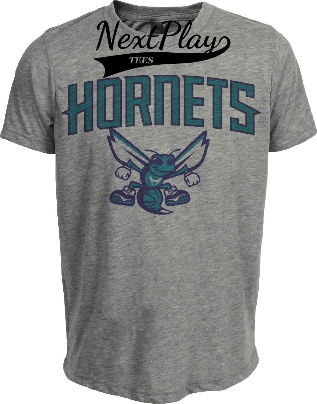 Charlotte Hornets Exclusive Retro Basketball Mascot 1992 Artwork Heather Gray Sublimated T-Shirt