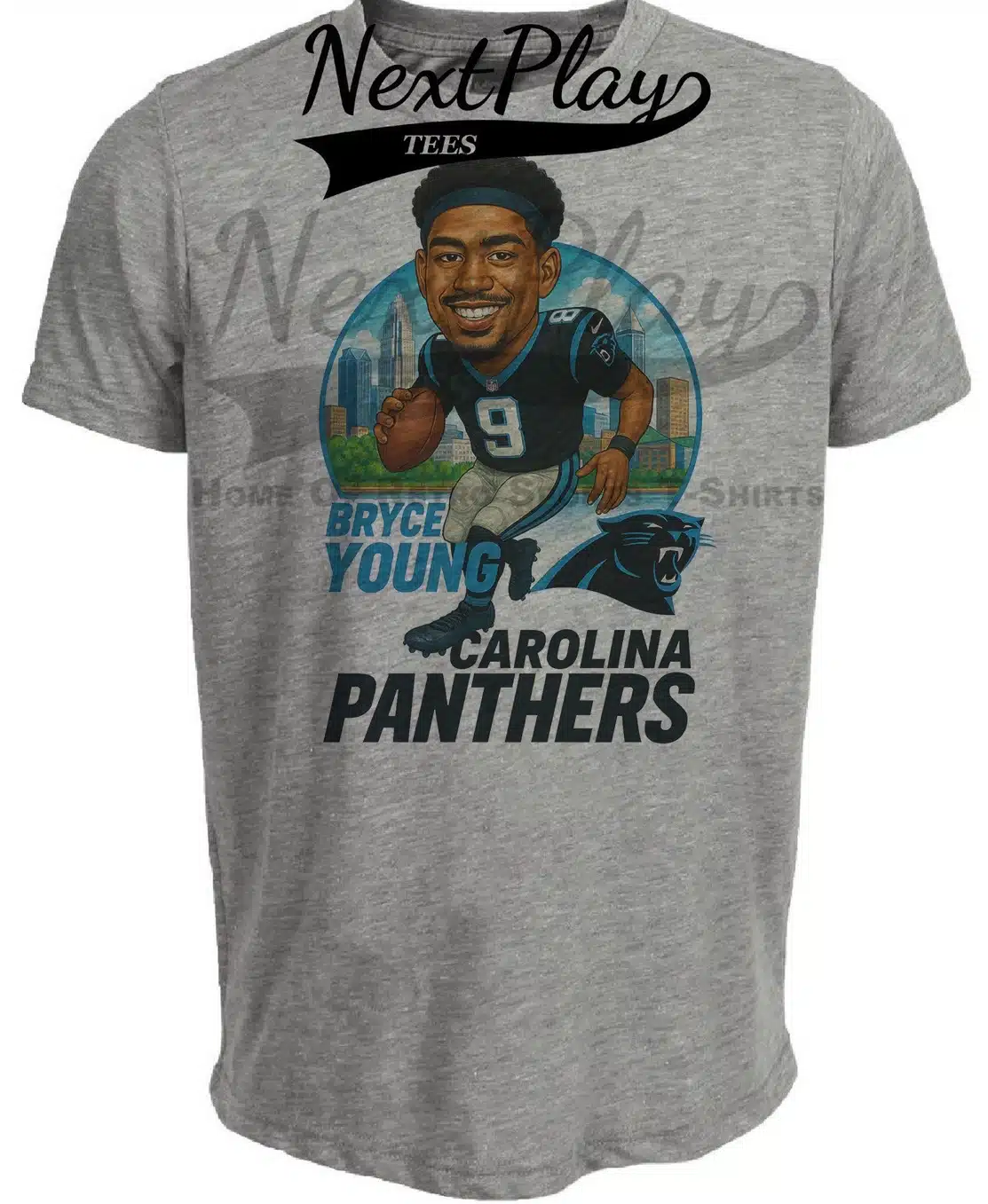 Carolina Panthers Bryce Young Exclusive Retro Football City Artwork Heather Gray Sublimated T-Shirt