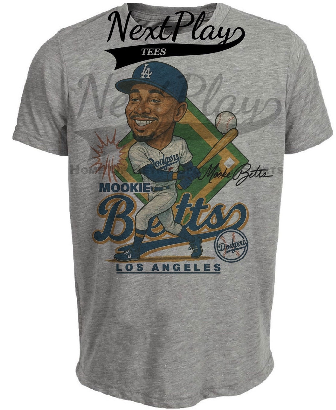 Los Angeles Dodgers Mookie Betts Exclusive Retro Baseball Caricature Artwork Heather Gray Sublimated T-Shirt