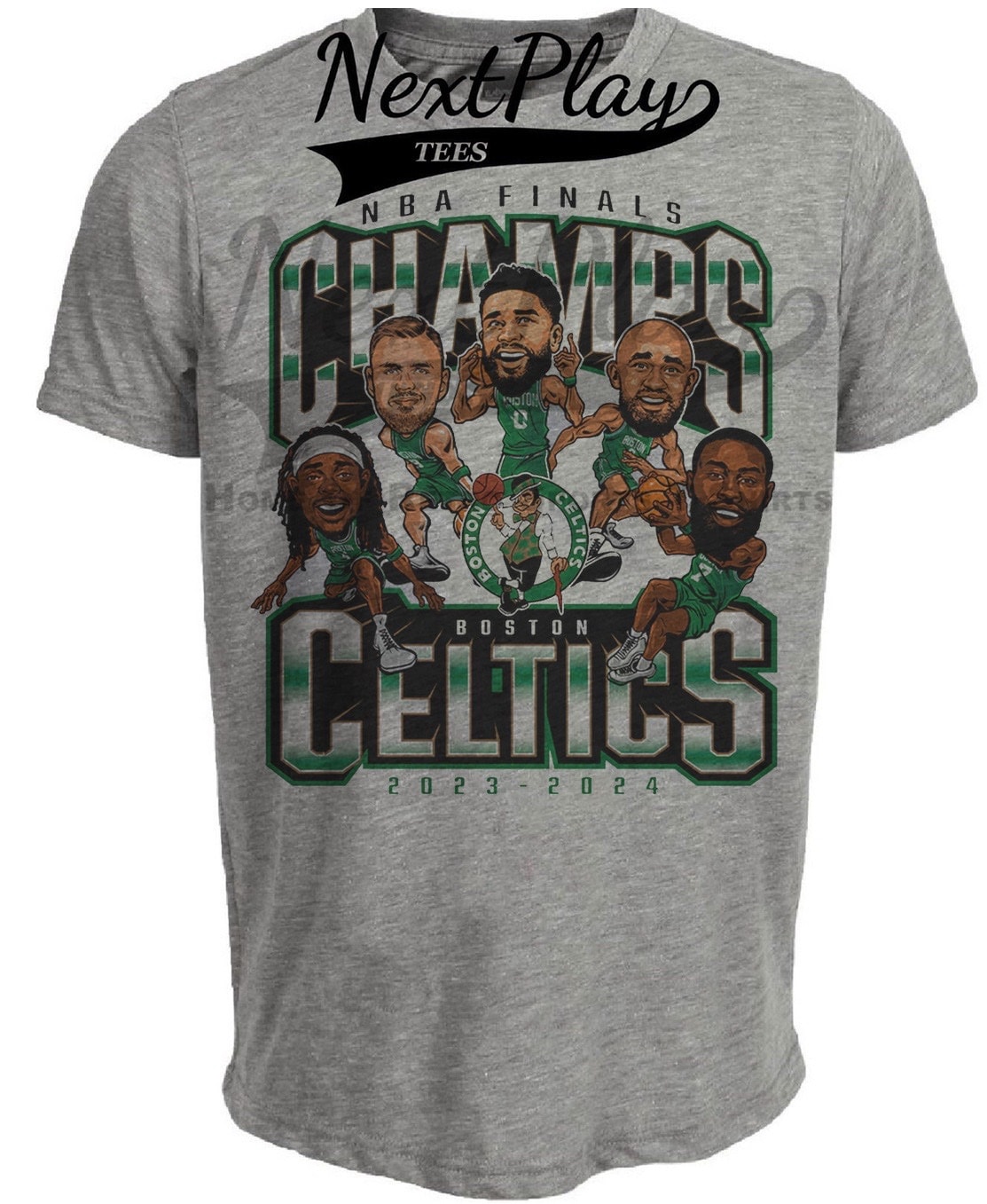 Boston Celtics Championship Team Exclusive Retro Basketball Artwork Heather Gray Sublimated T-Shirt