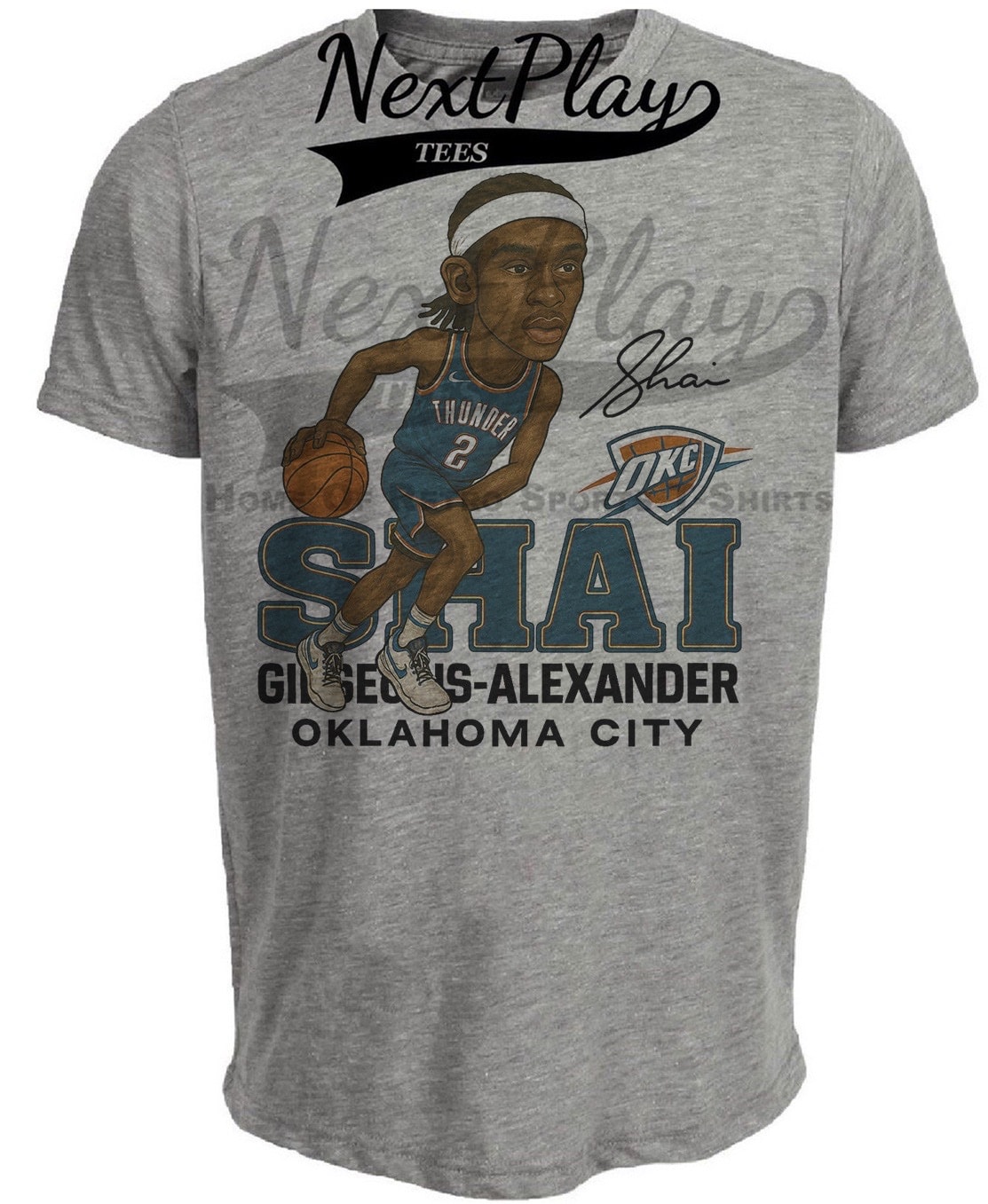 Oklahoma City Thunder Shai Gilgeous-Alexander SGA Exclusive Retro Basketball Artwork Heather Gray Sublimated T-Shirt