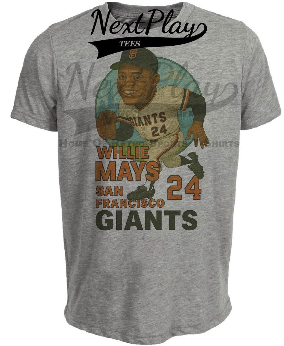San Francisco Giants Willie Mays Exclusive Retro Baseball Skyline 1965 Artwork Heather Gray Sublimated T-Shirt