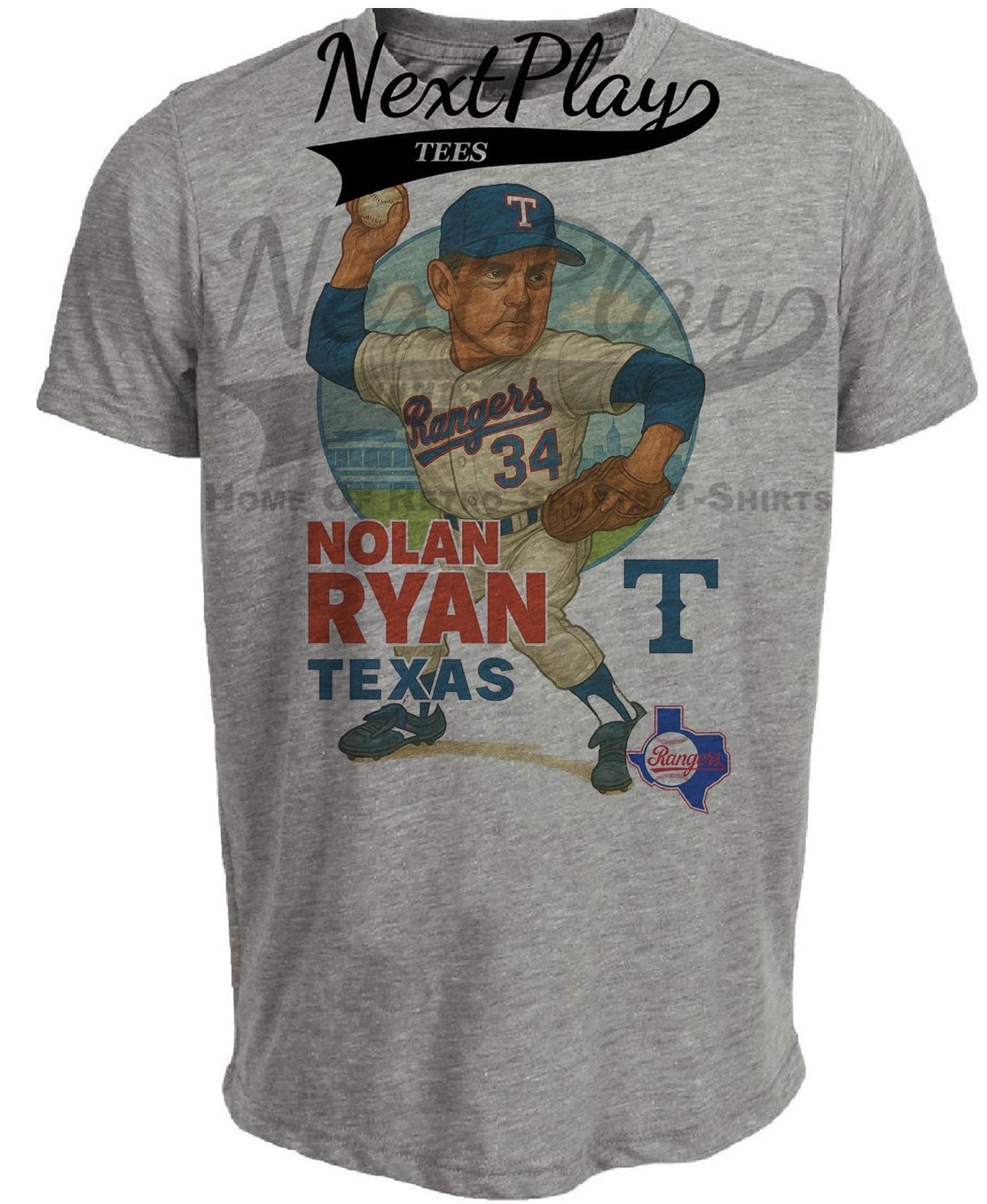 Texas Rangers Nolan Ryan Exclusive Retro Baseball Skyline 1989 Artwork Heather Gray Sublimated T-Shirt