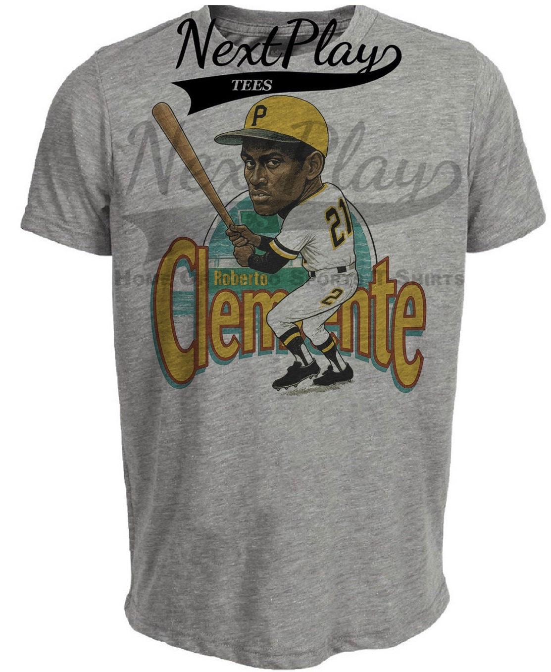 Pittsburgh Pirates Retro Roberto Clemente Baseball 1958 Artwork Heather Gray Sublimated T-Shirt