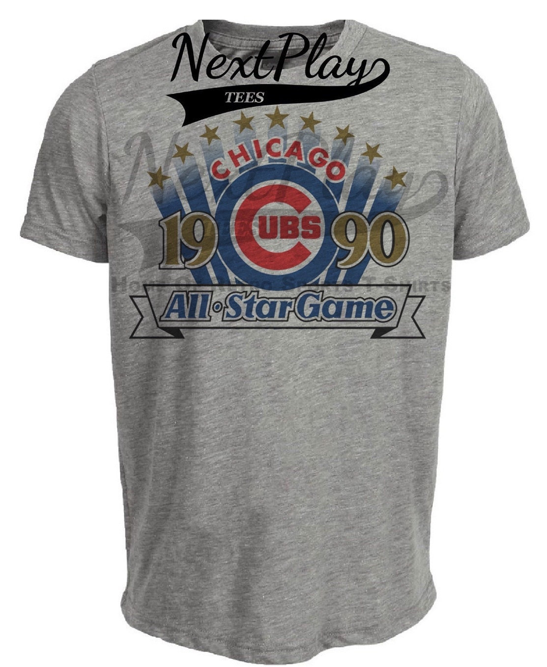 Chicago Cubs Retro All Star Game Baseball 1990 Artwork Heather Gray Sublimated T-Shirt