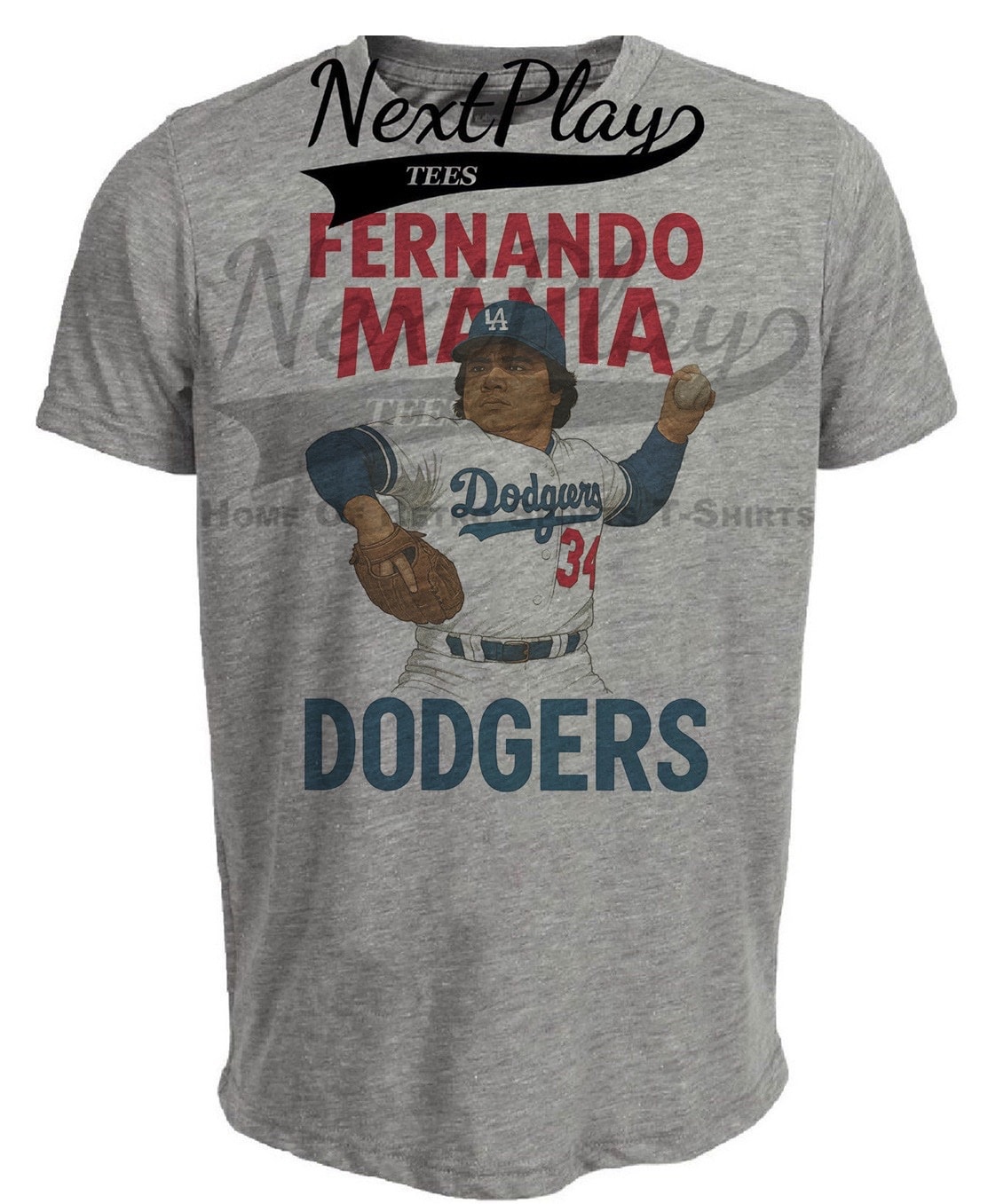 Los Angeles Dodgers Fernando Valenzuela Baseball 1980 Artwork Heather Gray Sublimated T-Shirt