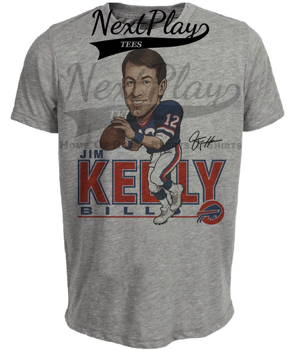 Buffalo Bills Jim Kelly Retro Football 1990 Artwork Heather Gray Sublimated T-Shirt