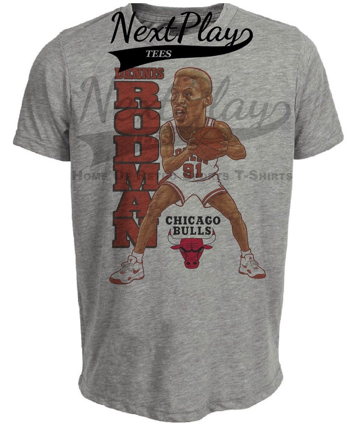 Chicago Bulls Dennis Rodman Retro Basketball 1996 Artwork Heather Gray Sublimated T-Shirt