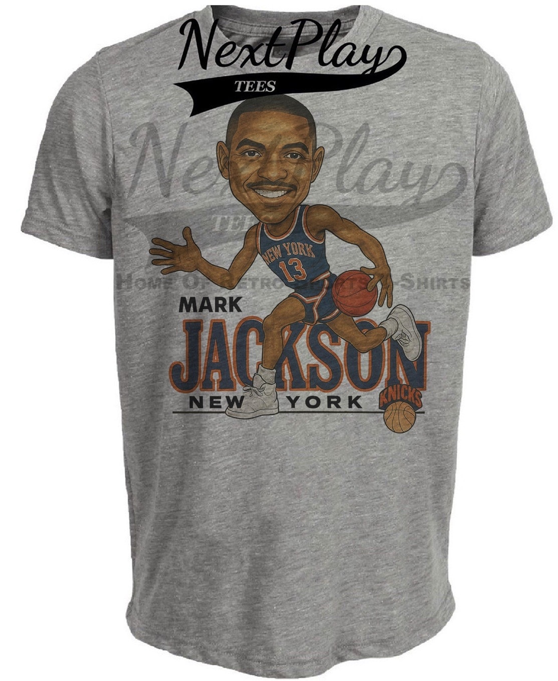 New York Knicks Mark Jackson Retro Basketball 1989 Artwork Heather Gray Sublimated T-Shirt