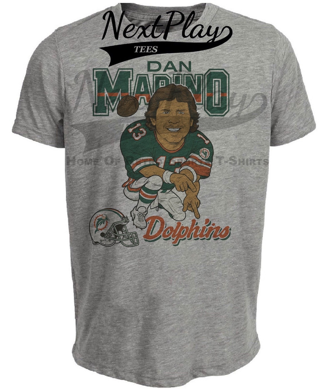 Miami Dolphins Dan Marino Retro Football 1984 Artwork Heather Gray Sublimated T-Shirt