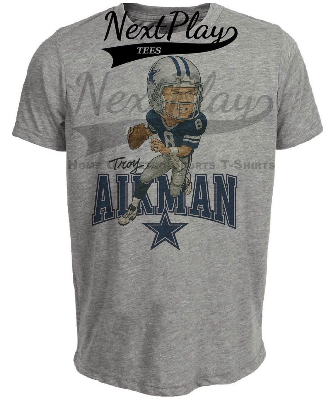 Dallas Cowboys Troy Aikman Retro Football 1992 Artwork Heather Gray Sublimated T-Shirt