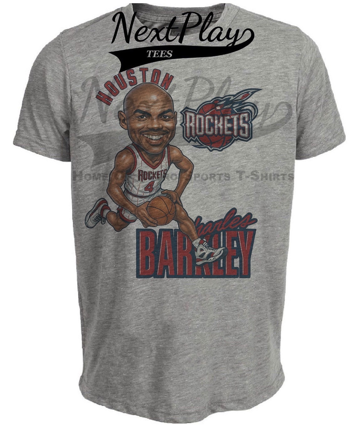 Houston Rockets Charles Barkley Retro Basketball 1996 Artwork Heather Gray Sublimated T-Shirt