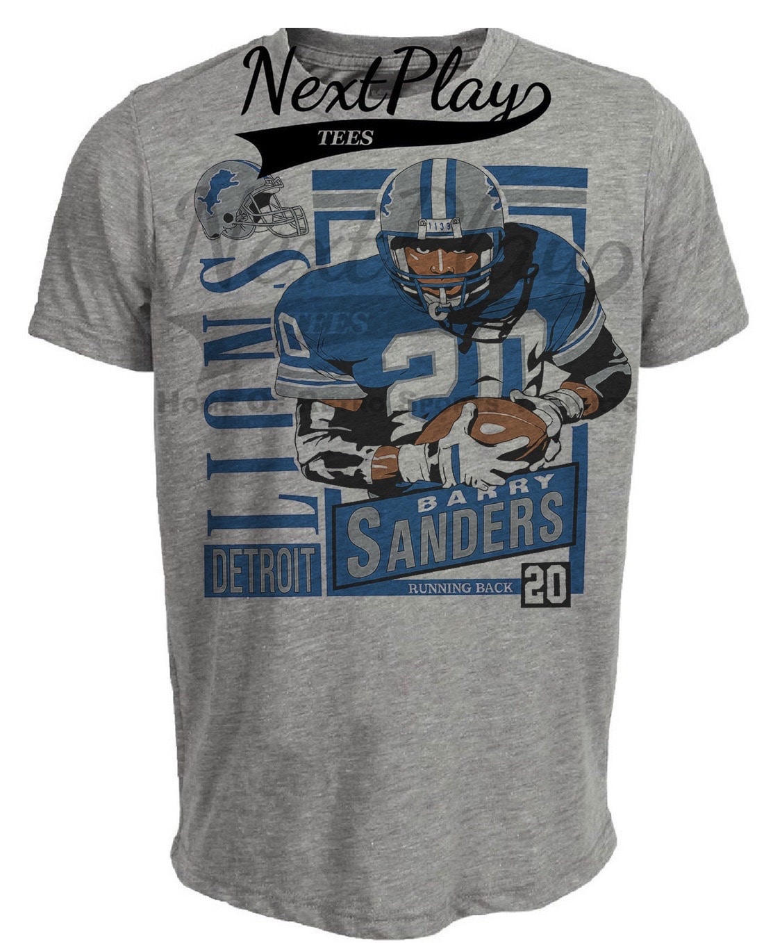 Detroit Lions Barry Sanders Retro Football 1991 Artwork Heather Gray Sublimated T-Shirt