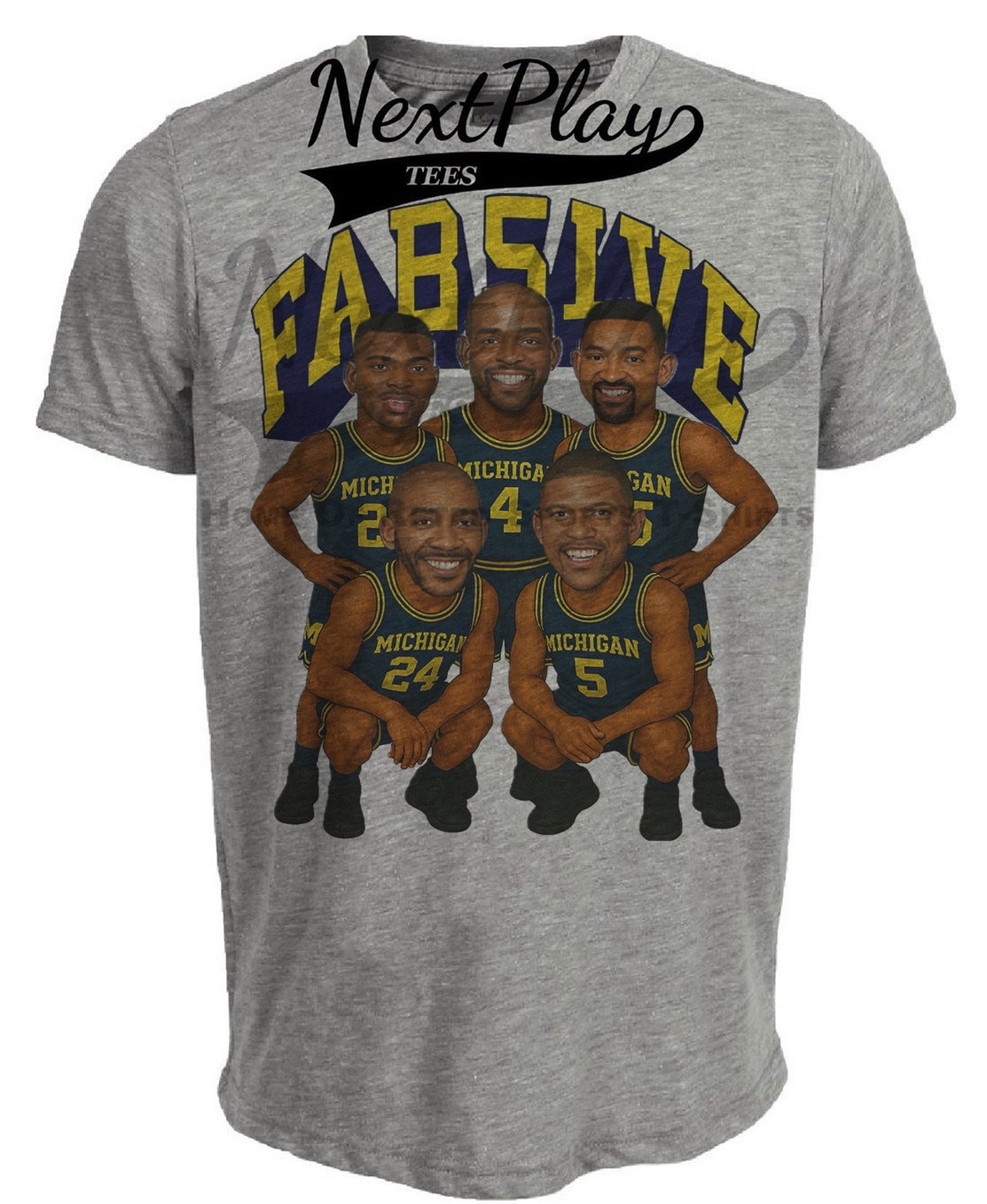 Michigan Wolverines Retro Fab Five Basketball 1991 Artwork Heather Gray Sublimated T-Shirt
