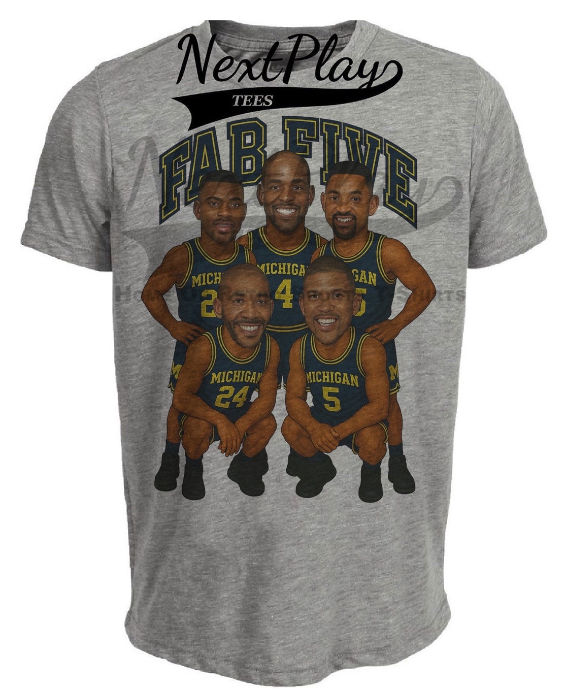 Michigan Wolverines Retro Fab Five Big Blue 1991 Artwork Heather Gray Sublimated T-Shirt