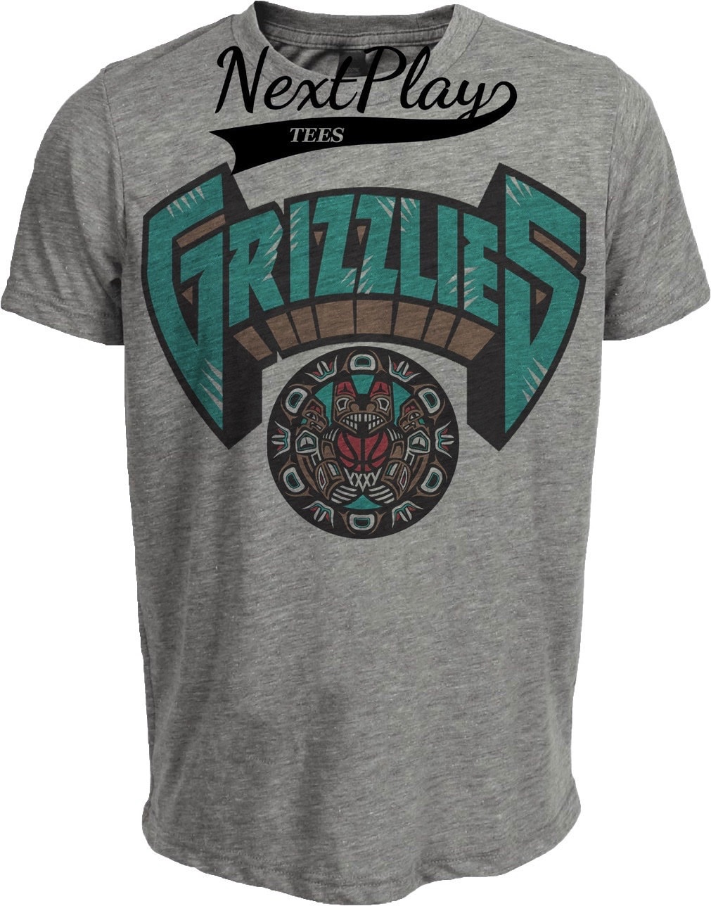 Memphis Grizzlies Retro Basketball 1997 Artwork Heather Gray Sublimated T-Shirt