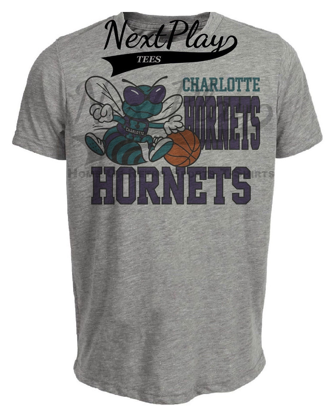 Charlotte Hornets Retro Basketball 1991 Artwork Heather Gray Sublimated T-Shirt