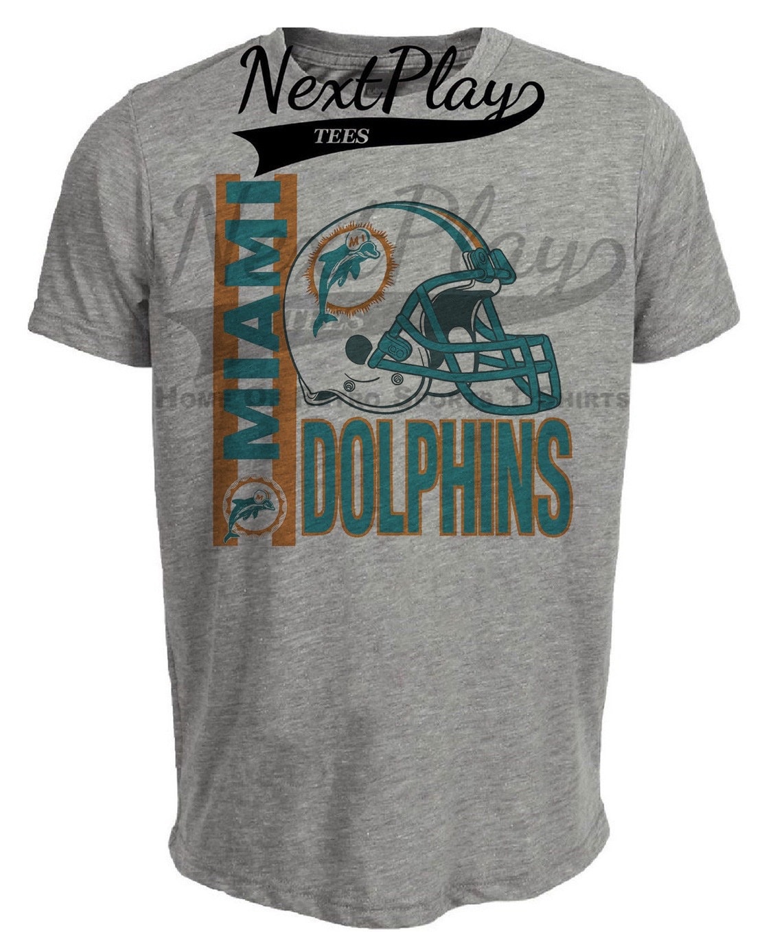 Miami Dolphins Rare Retro Football 1984 Artwork Heather Gray Sublimated T-Shirt