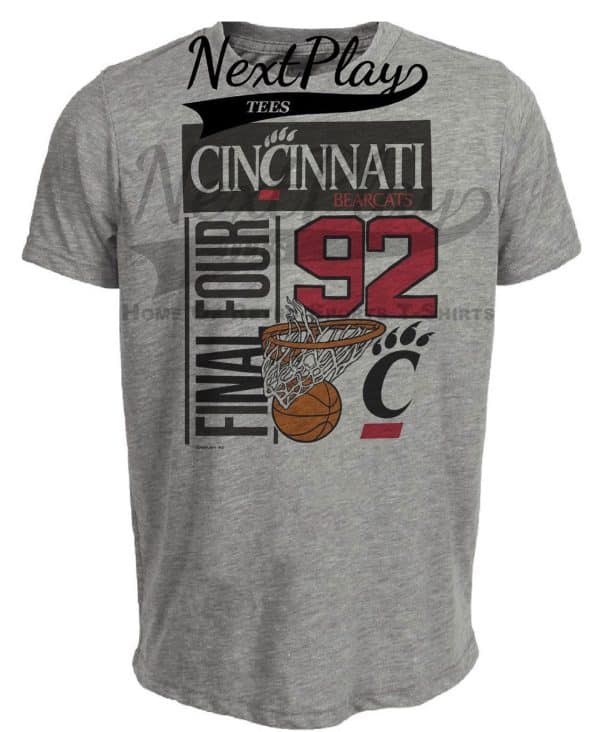 Cincinnati Bearcats Final Four Retro Basketball 1992 Artwork Heather Gray Sublimated T-Shirt