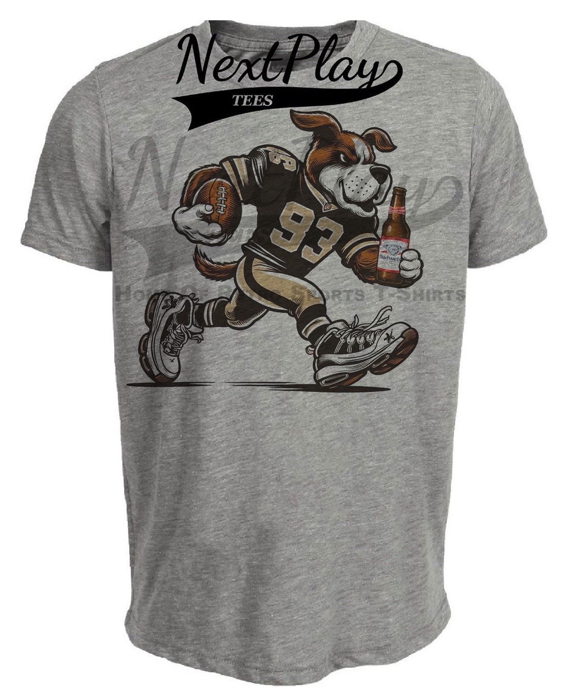 New Orleans Saints Mascot Exclusive Retro Football Drink Artwork Heather Gray Sublimated T-Shirt