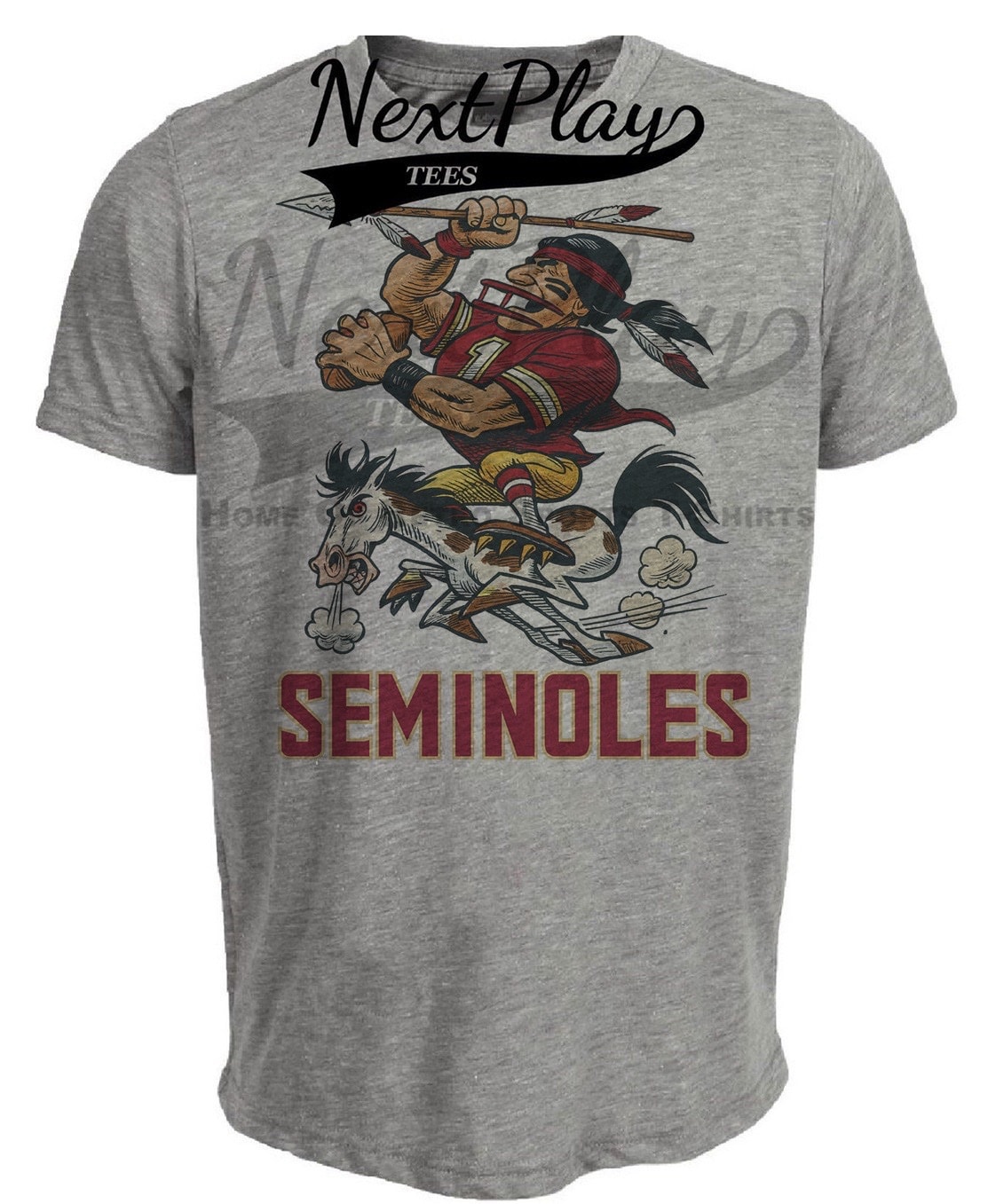 Florida State Seminoles Mascot Retro Football 1991 Artwork Heather Gray Sublimated T-Shirt