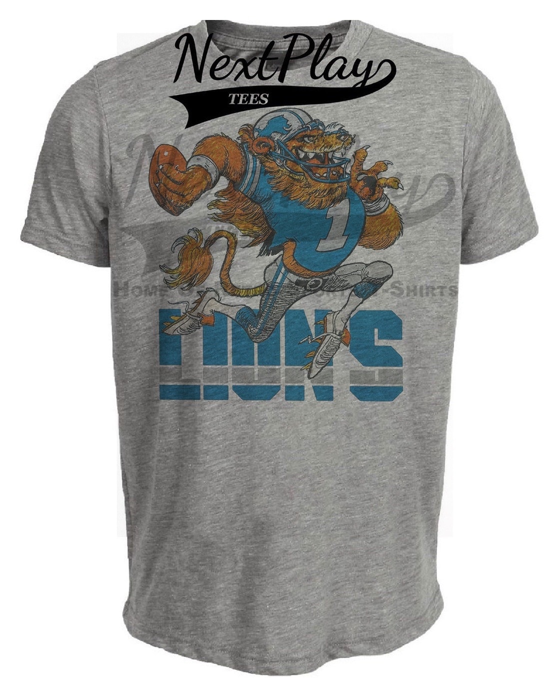 Detroit Lions Mascot Retro Football 1991 Artwork Heather Gray Sublimated T-Shirt