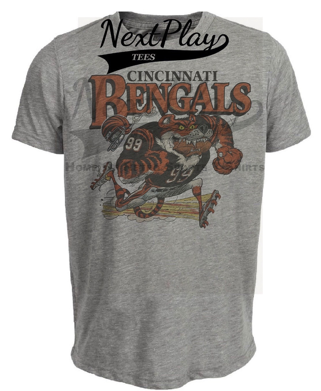 Cincinnati Bengals Mascot Retro Football 1991 Artwork Heather Gray Sublimated T-Shirt