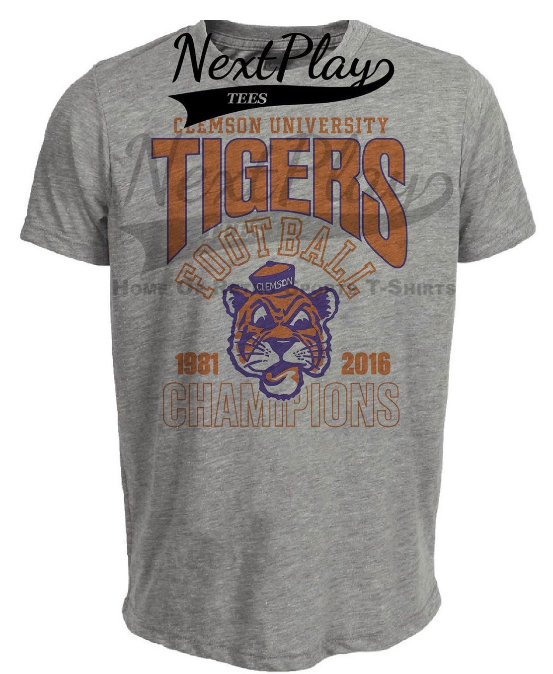 Clemson Tigers Retro Football Championship Artwork Heather Gray Sublimated T-Shirt