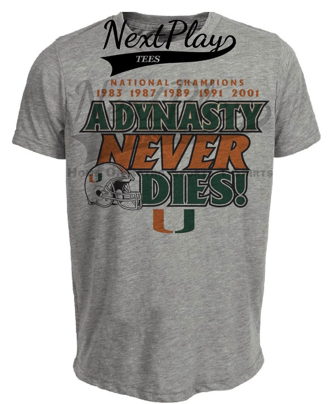 Miami Hurricanes National Champions Dynasty Retro Football Artwork Heather Gray Sublimated T-Shirt