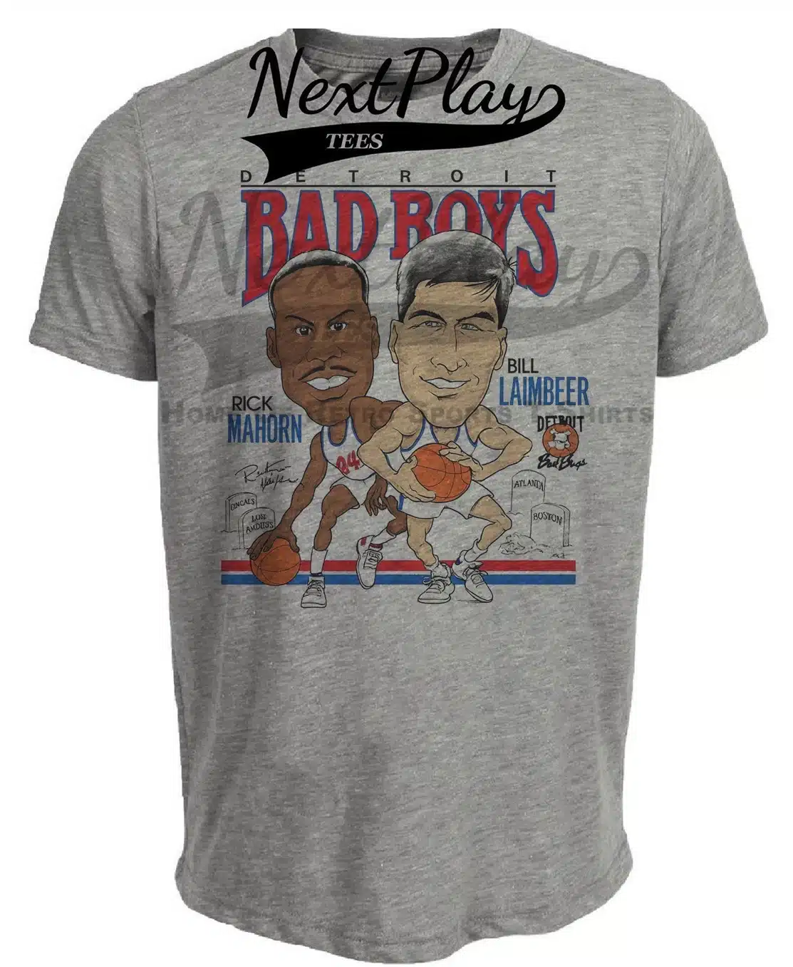 Detroit Pistons Bad Boys Bill Laimbeer & Rick Mahorn Retro Basketball 1989 Artwork Heather Gray Sublimated T-Shirt