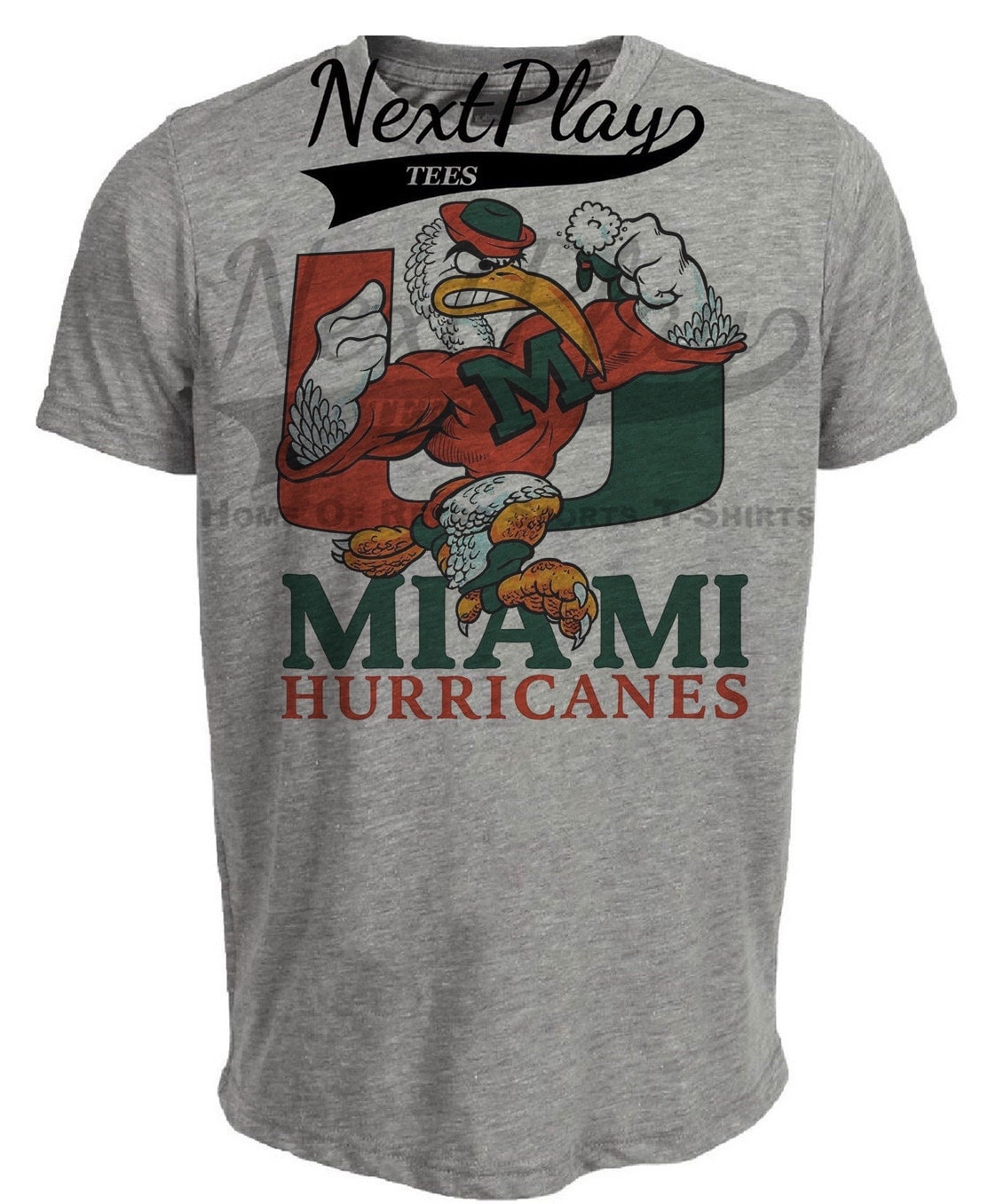 Miami Hurricanes Retro Football 2001 Artwork Heather Gray Sublimated T-Shirt