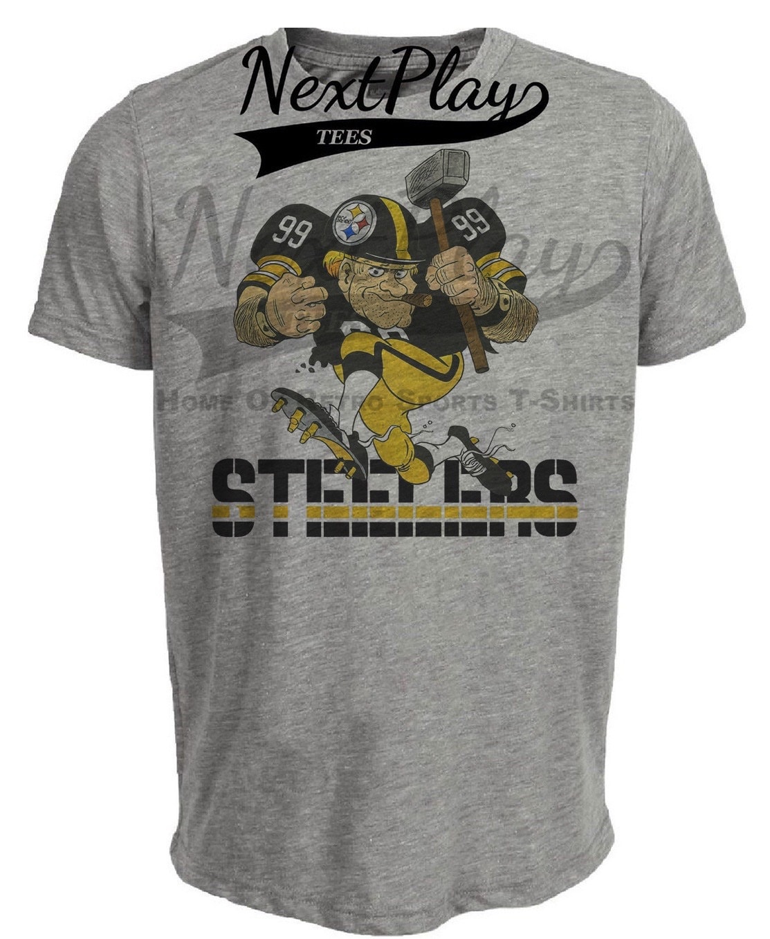 Pittsburgh Steelers Mascot Retro Football 1992 Artwork Heather Gray Sublimated T-Shirt
