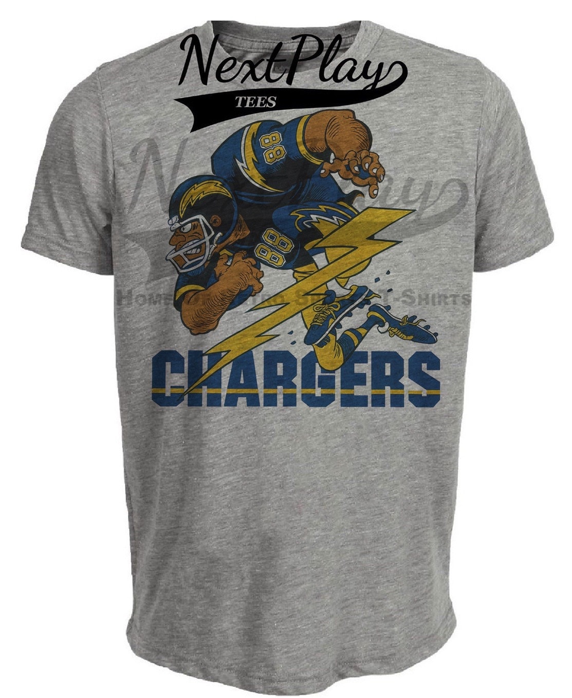 Los Angeles Chargers Retro Football Artwork Heather Gray Sublimated T-Shirt