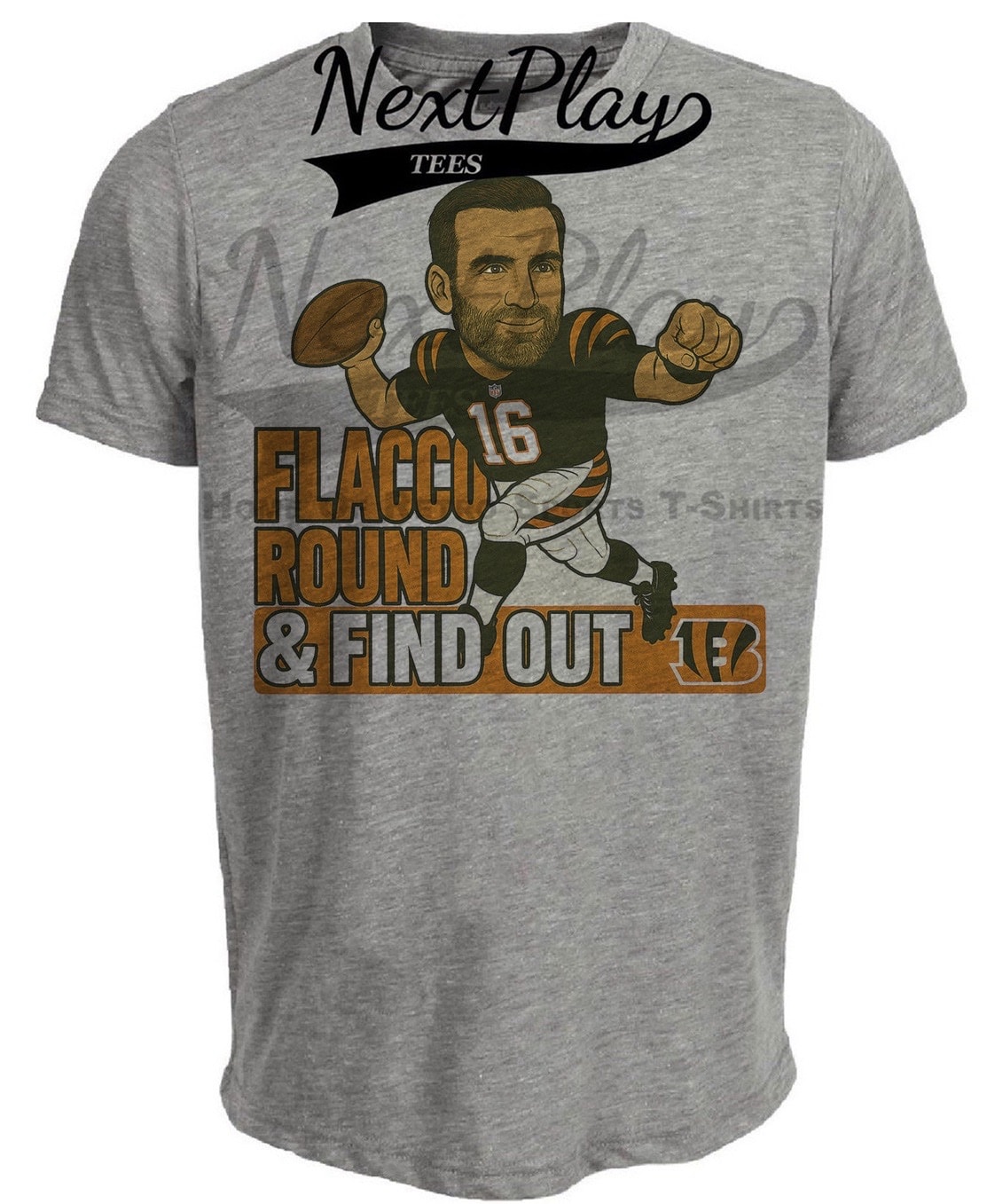 Cincinnati Bengals Joe Flacco Round Find Out Retro Football T-shirt Heather Gray Sublimated