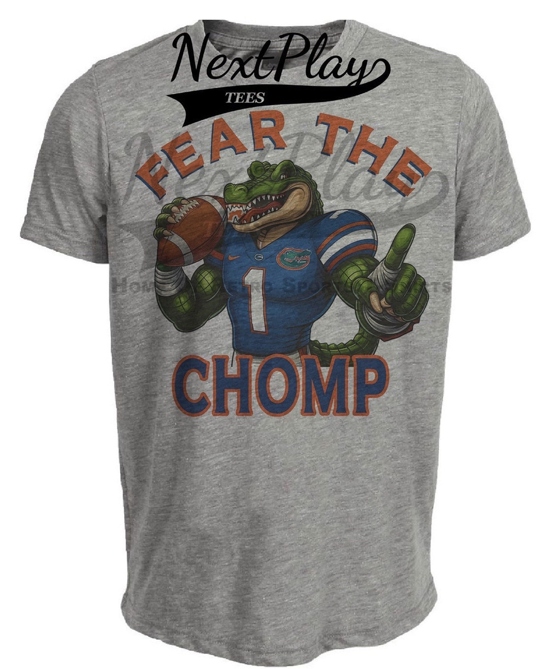 Florida Gators Fear The Chomp Retro Football T-Shirt Heather Gray Sublimated