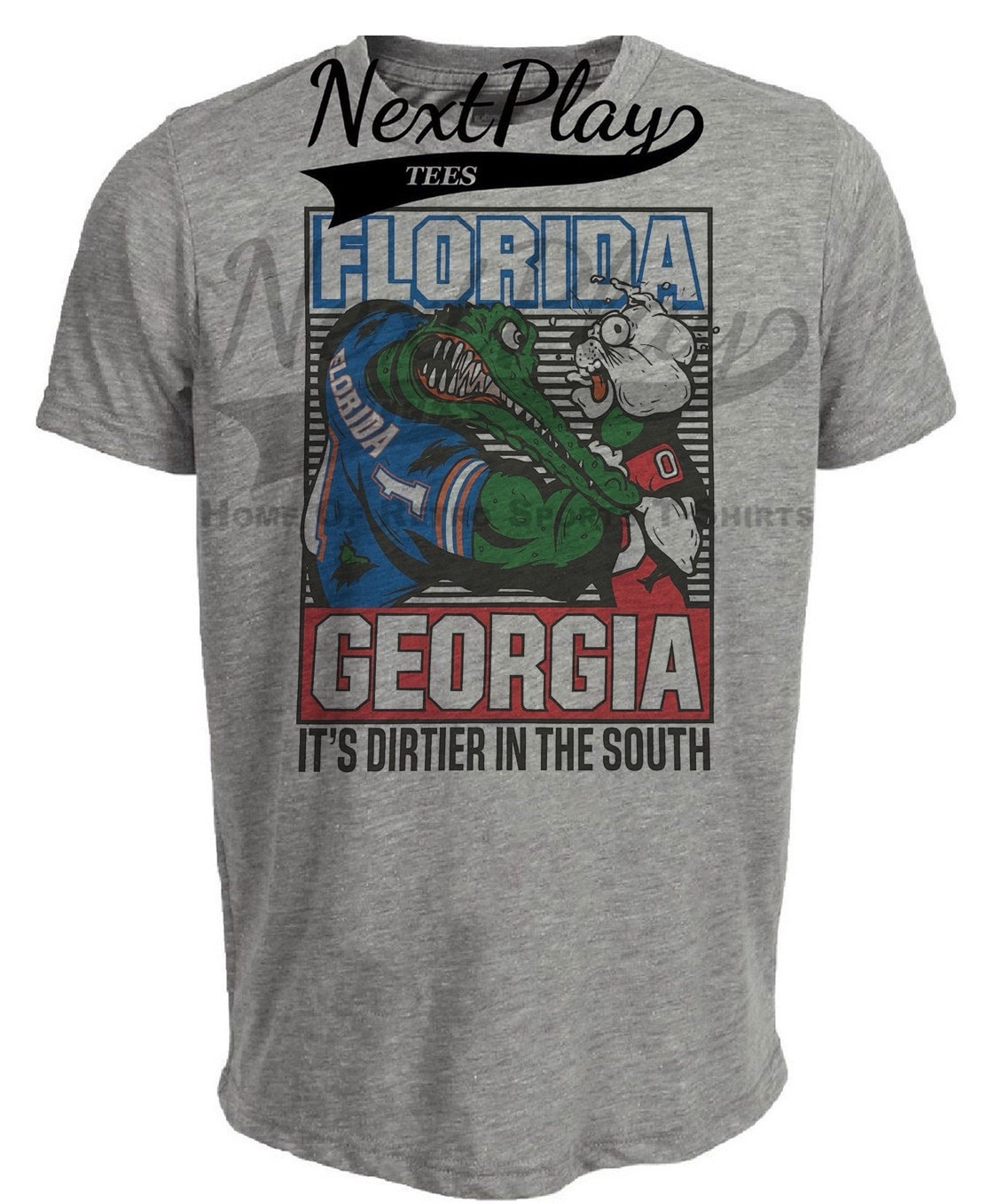 Florida Gators vs. Georgia Bulldogs Dirty South Retro Rivals Football T-Shirt Heather Gray Sublimated