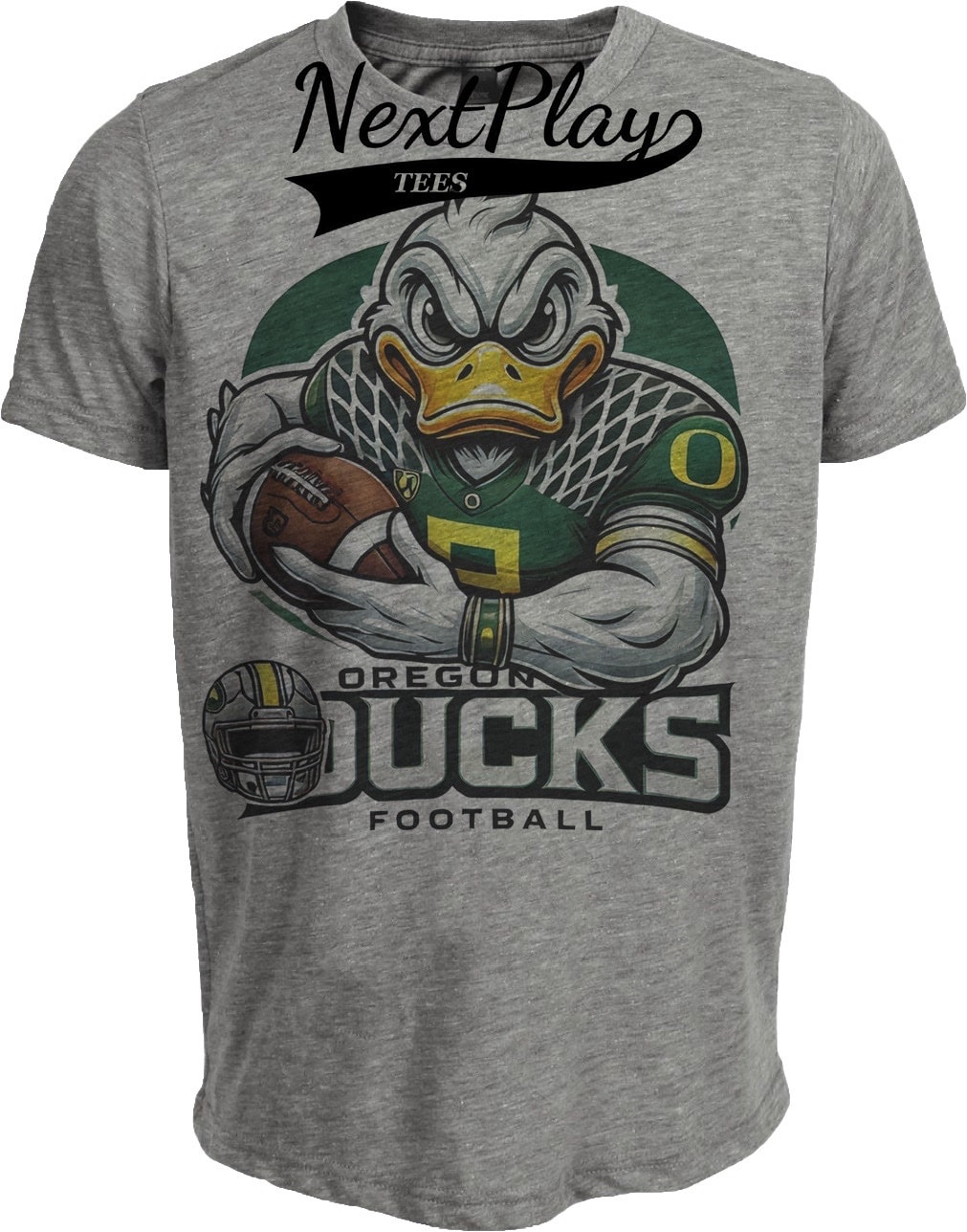 Oregon Ducks Retro Football Mean Mug Artwork Heather Gray Sublimated T-Shirt