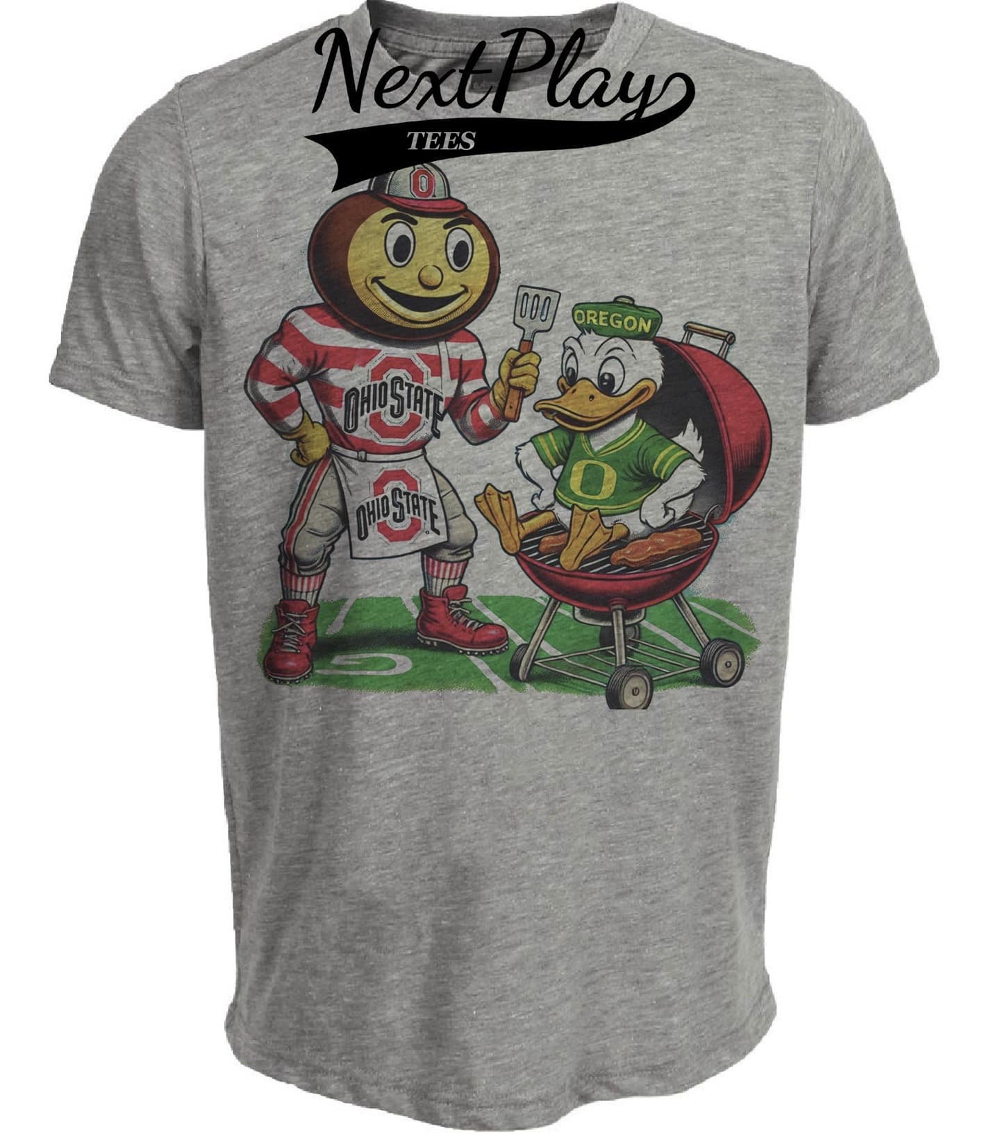 Ohio State Buckeyes vs. Oregon Ducks Retro Rivals Football Artwork Heather Gray Sublimated T-Shirt